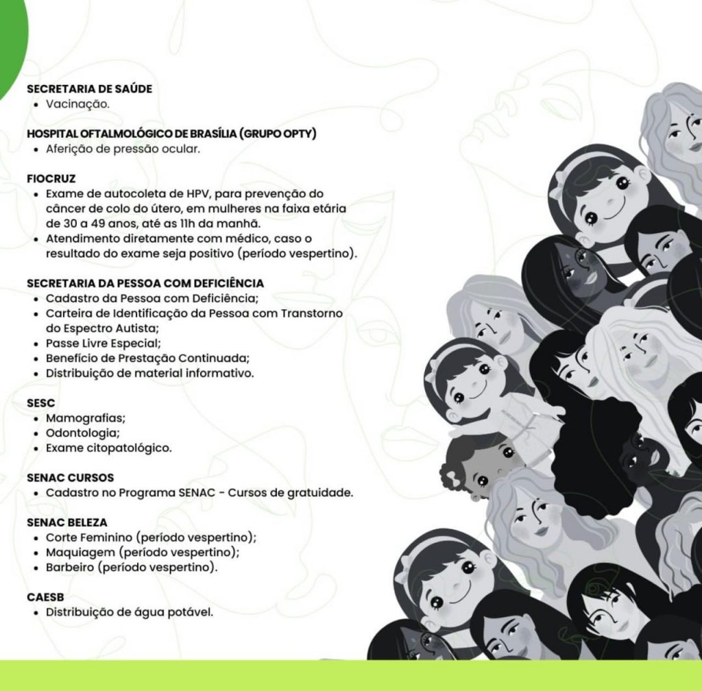 28ª edição do Dia da Mulher | 6/10/2025 (segunda-feira), das 8h às 14h | SCN Qd. 01, no Setor Comercial Norte-SCN, quadra 01, bloco G, loja 01 – Ed. Rossi Esplanada Business, em frente ao Liberty Mall. |